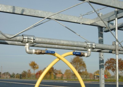 - Wasserzuleitungsrohr in der Gitterbinder-Konstruktion intregriert und auf der kompletten Gießwagenbreite mit 1¼“ Durchmesser (hoher Wasserdurchlass sowie geringer Druckabfall)